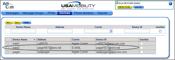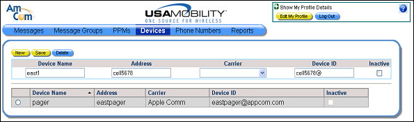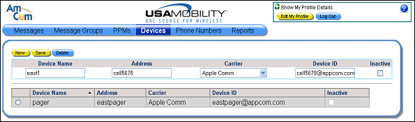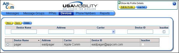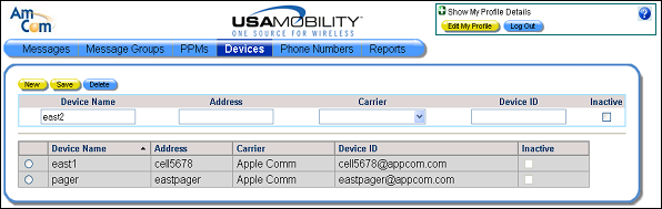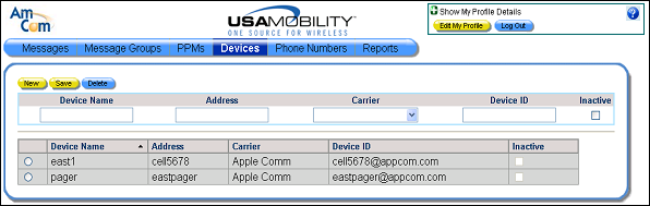 1. Select the Devices option from the menu bar. The Devices screen displays.