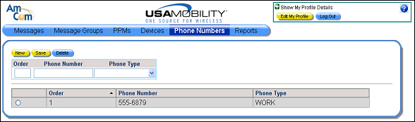 5. Click the Save button to save the new phone number. A saved message displays.
