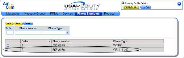 6. Click the OK button to close the message and refresh the screen. The new phone information is included in the list of phones.