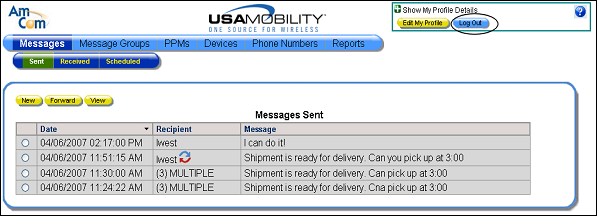 1. Click the Logout button in the profile information window.