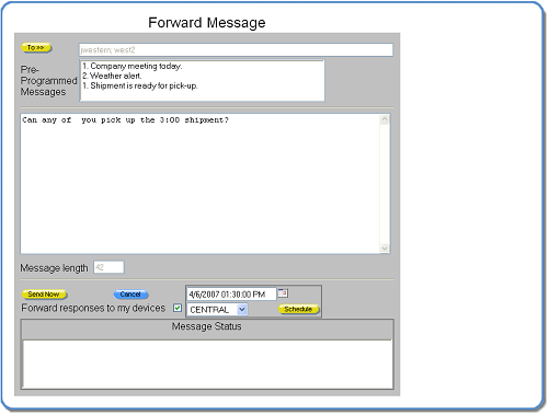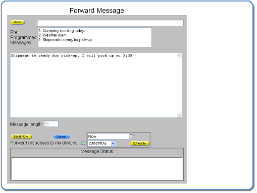 8. When the message is forwarded, a message status displays in the Message Status window and the window closes automatically.