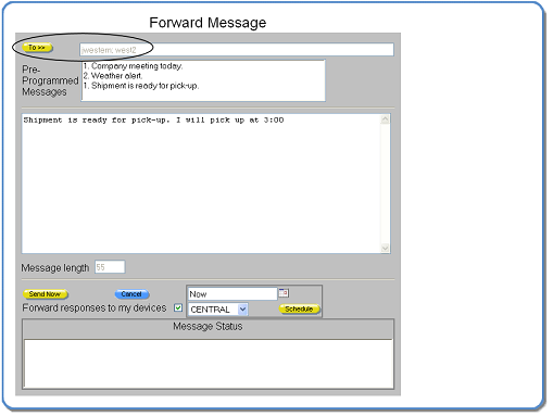6. Enter the message to be forwarded in the message window. A user can enter text manually, choose a pre-programmed message (PPM), or do both. When text is entered manually and a PPM is selected, the PPM is inserted before the manually entered message.