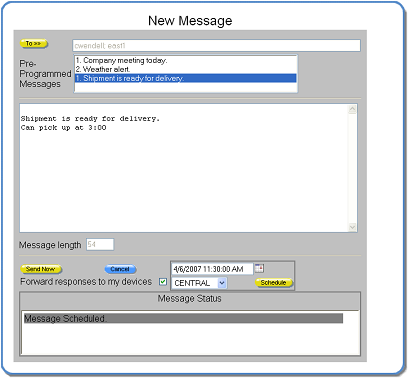 7. The message can be sent immediately by clicking the Send Now button, or it can be scheduled for delivery at a future date and time.