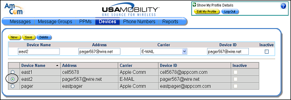 1. Select the Devices option from the menu bar. The Devices screen displays.