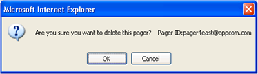 3. Click the Delete button. A warning message displays, showing the device ID for the device that will be deleted.