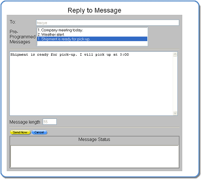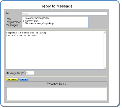 5. Click the Send Now button to send the reply. The message status displays in the Message Status window and the window is automatically closed. The Received screen redisplays.